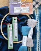 - Sashiko starter kit (needles, thread, embroidery hoop, stitching templates)