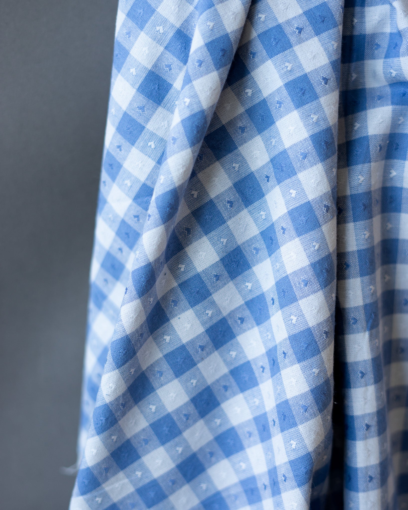 Dobby Hearts Gingham in Alice Blue