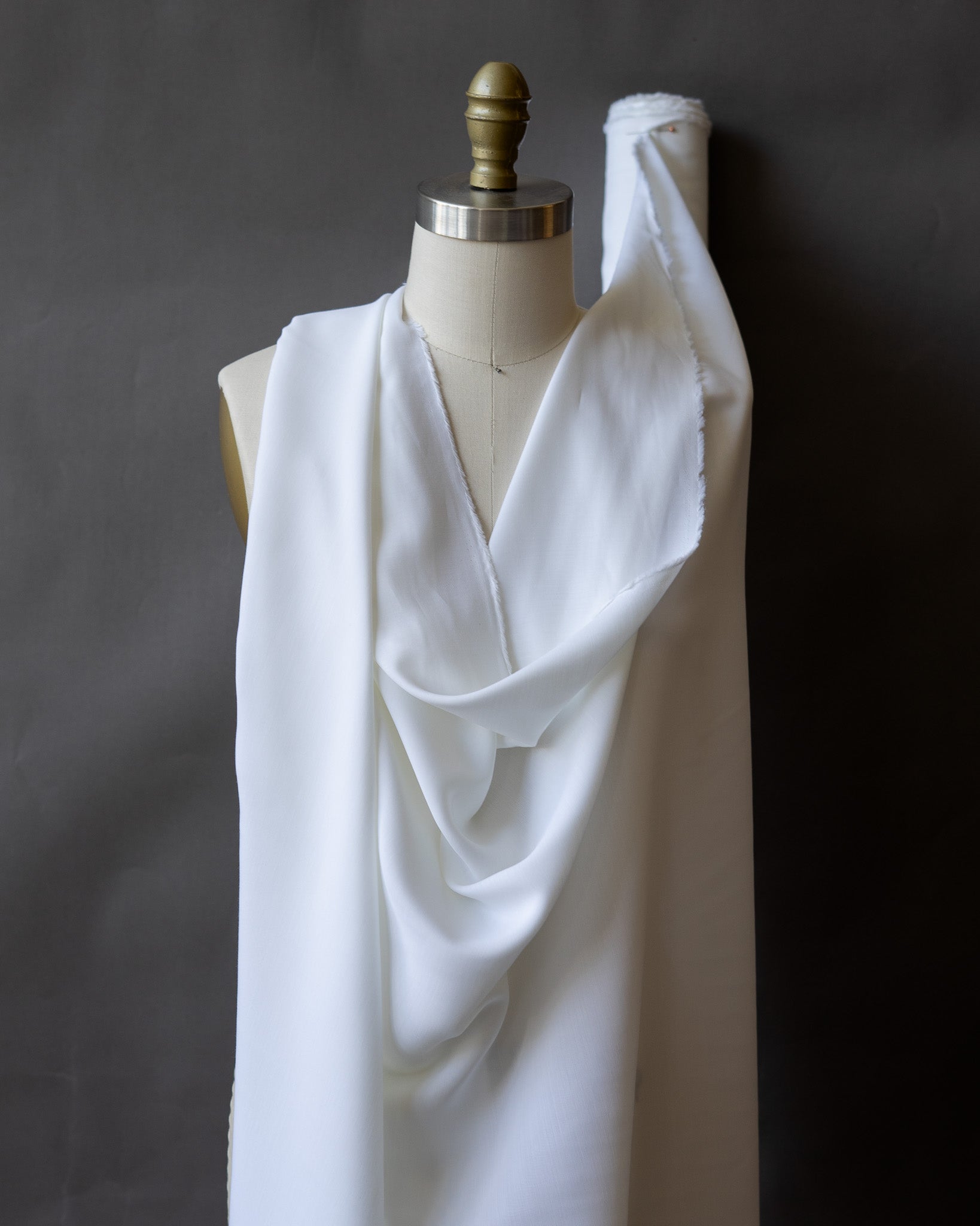 This deadstock white cotton challis is great for lightweight shirts, dresses, and garment lining. "Deadstock" refers to surplus or discontinued fabrics from clothing brands and mills that has gone unused (and might otherwise end up in a landfill). It's a win-win: you get premium fabric at a great price, and this beautiful fabric gets a second life!