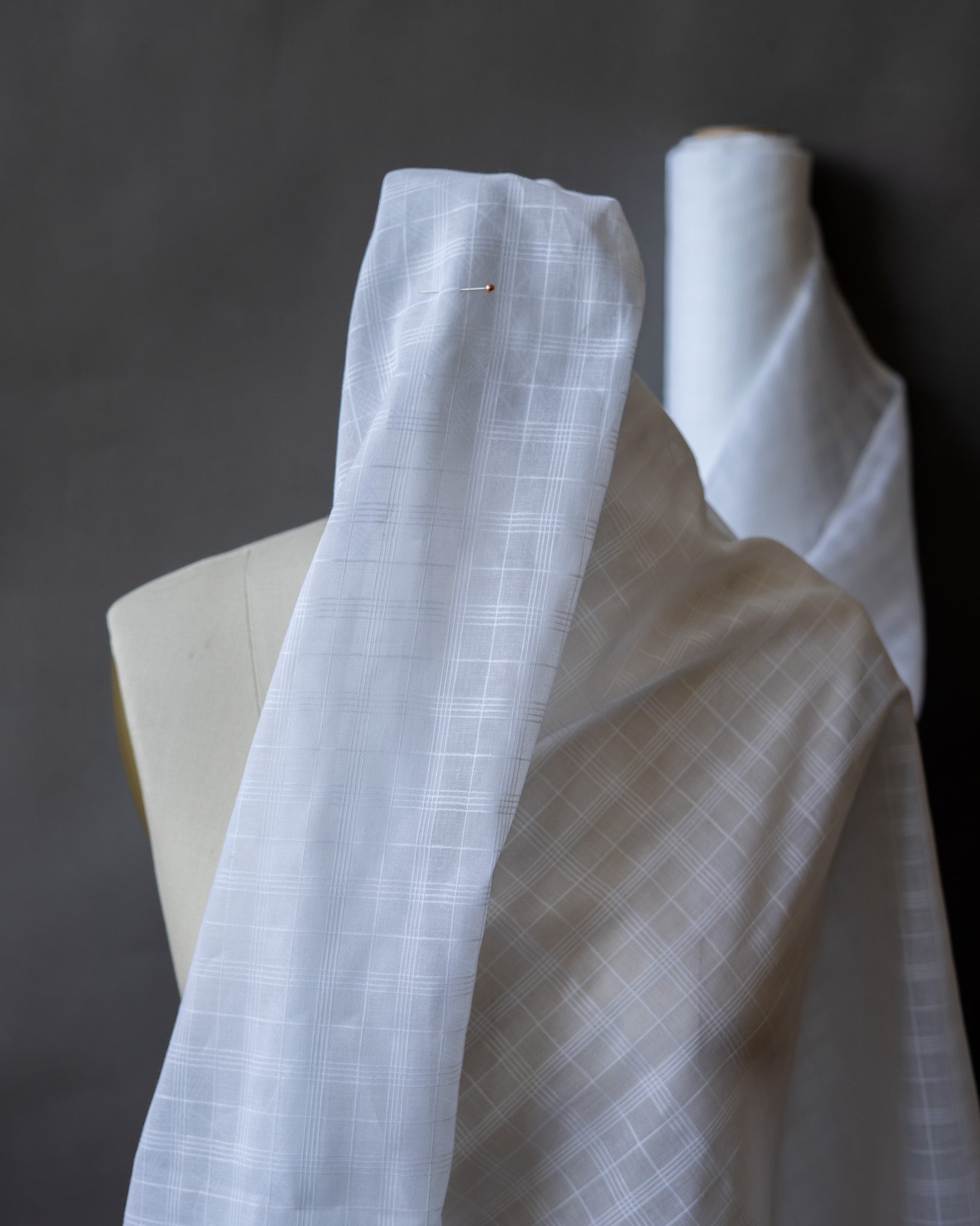This designer deadstock cotton voile has some transparency and a cute windowpane plaid pattern that makes it great for shirts, dresses, and home decor projects. "Deadstock" refers to surplus or discontinued fabrics from clothing brands and mills that has gone unused (and might otherwise end up in a landfill). It's a win-win: you get premium fabric at a great price, and this beautiful fabric gets a second life!