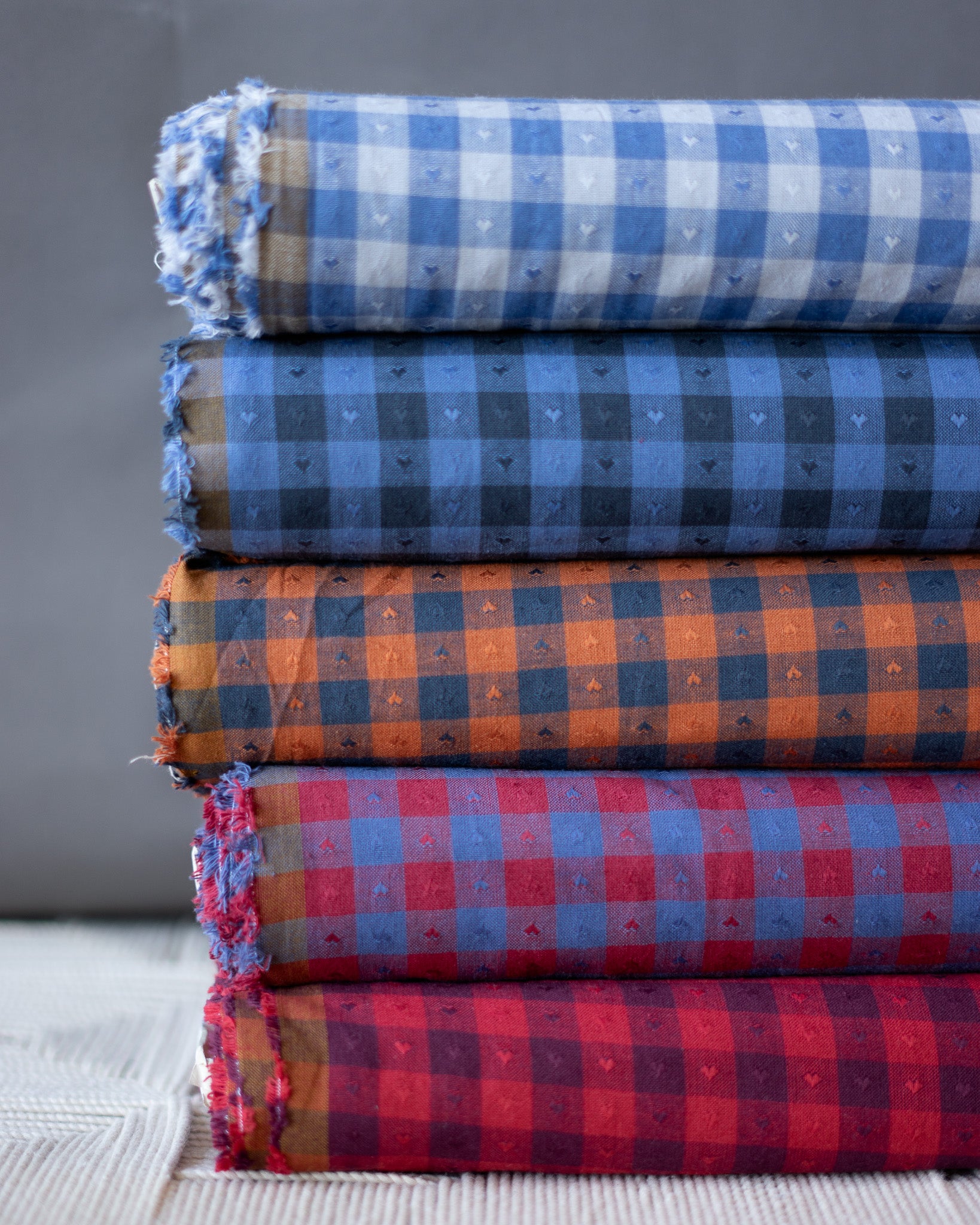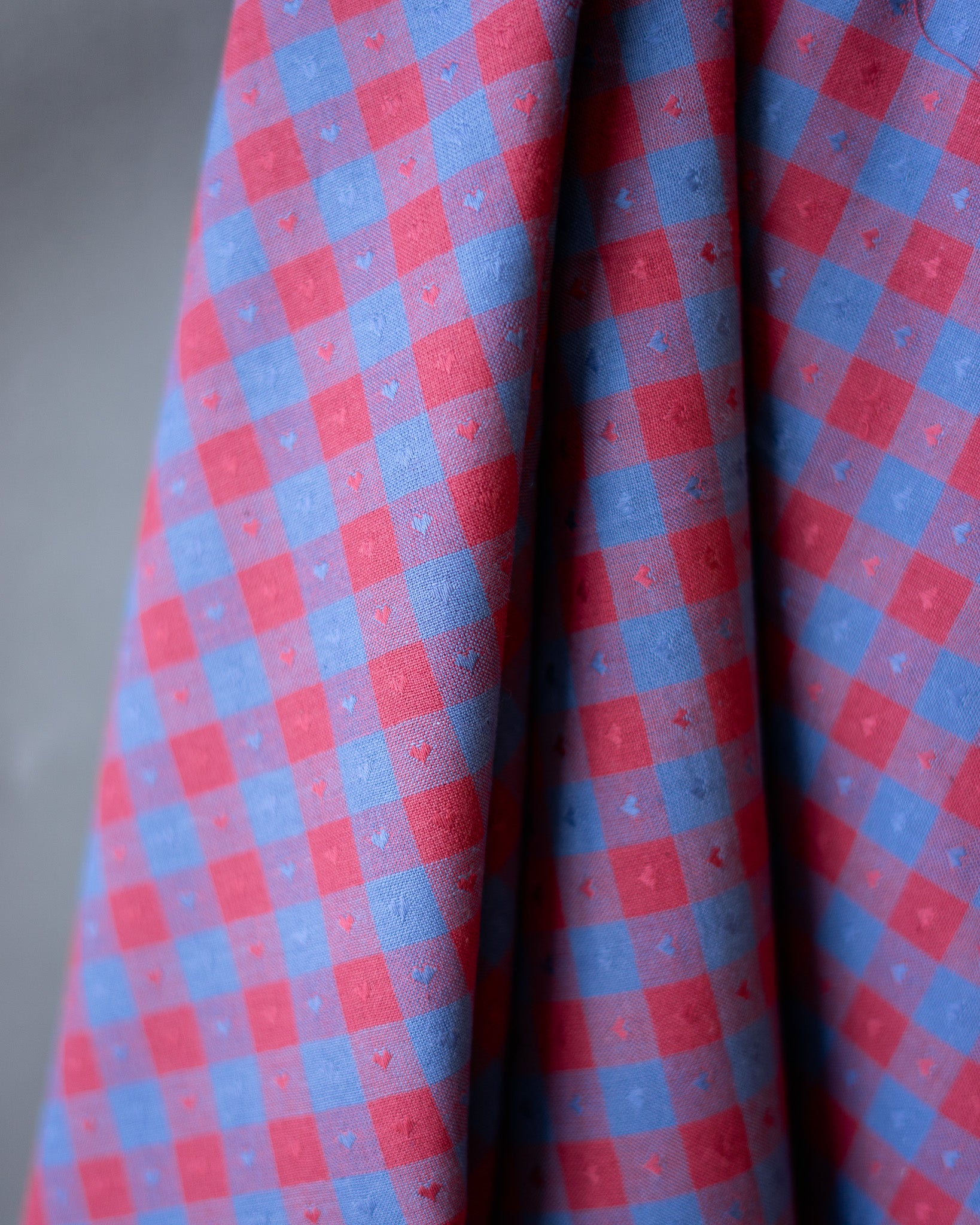 This whimsical dobby heart gingham is part of Fableism's Queen of Hearts collection, perfect for Valentine's Day projects like dresses, quilts, pillows, and purses!