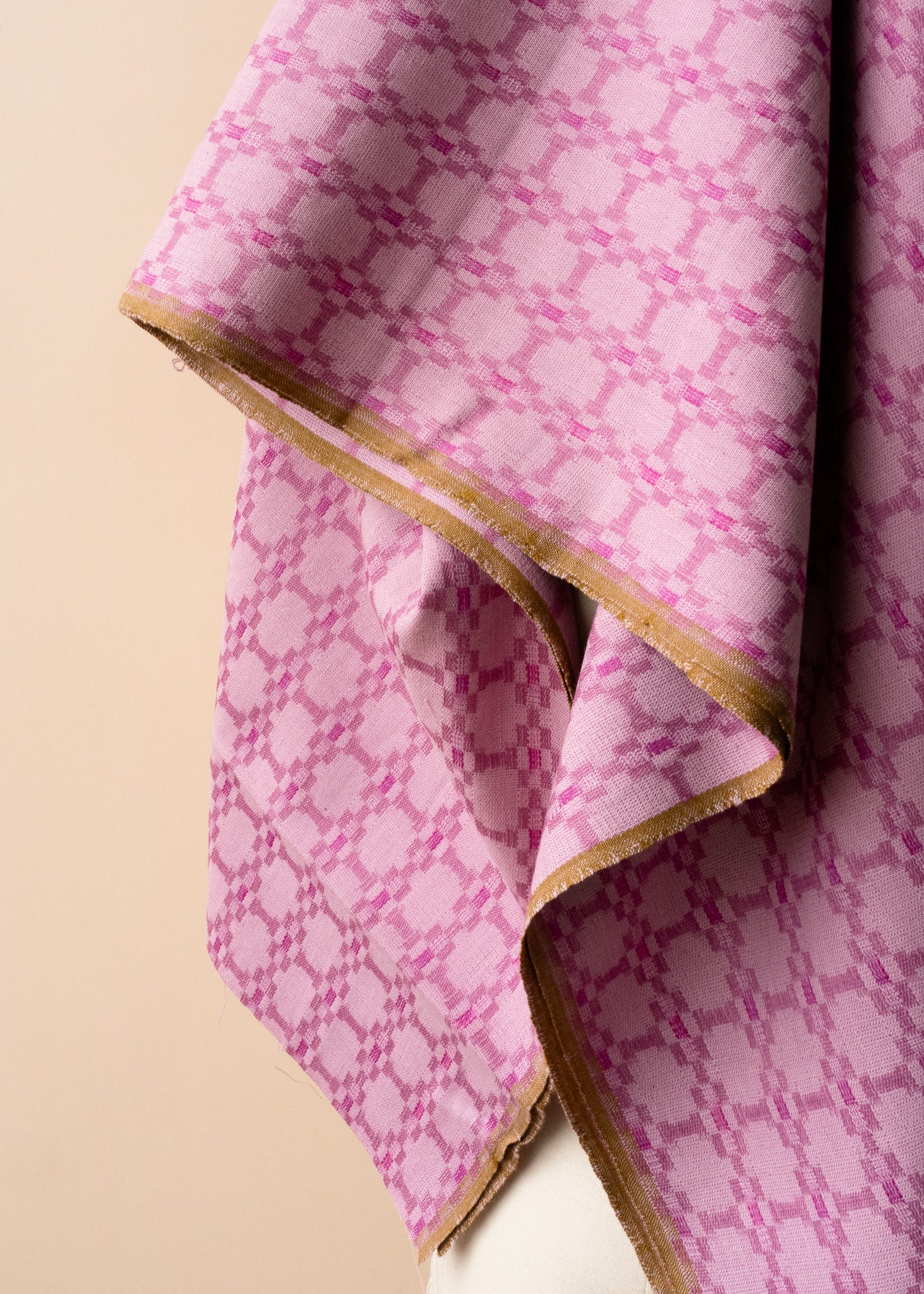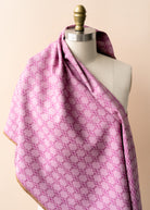 This print woven is part of Fableism's Monarch Grove collection, inspired by colors found in the monarch groves of the California Coast. It's soft and drapey with a fun geometric pattern, making it great for casual apparel, kids clothes, or beach blankets.