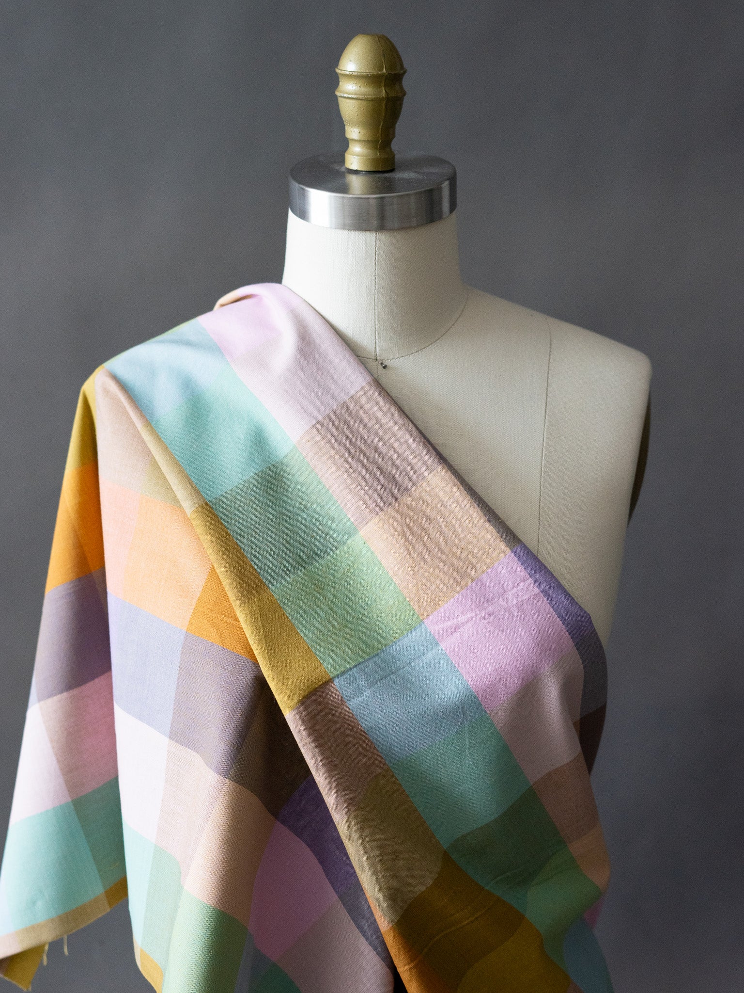 Inspired by the vastness of the grand canyon and its full spectrum of color, this woven features a punchy mix of hues from golden ochre to deep periwinkle and crisp turquoise. Use it to sew a skirt, button-up, dress, or quilt.