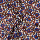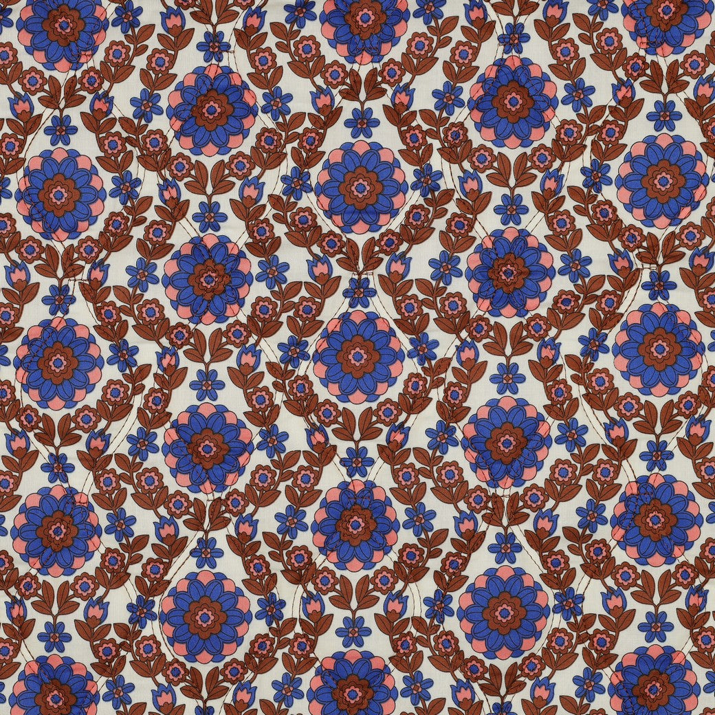 Cotton Voile Stepped Flowers Caramel & Cobalt