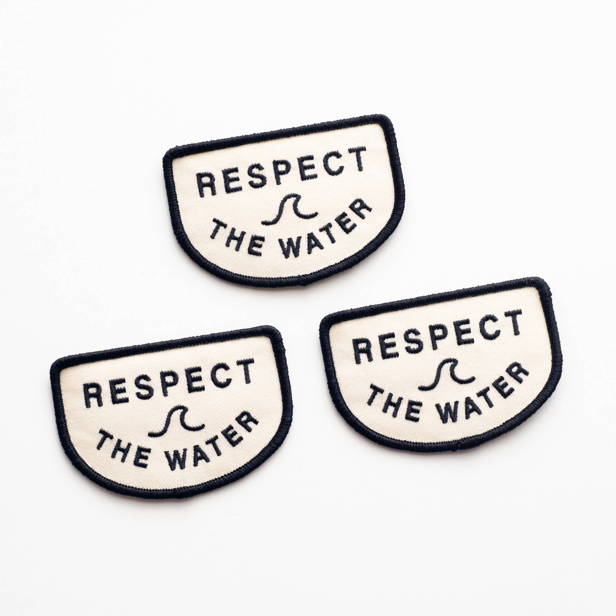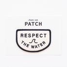 Show your love for the ocean with our "Respect the Water" iron-on embroidered patch. This elegant 2.5-inch wide patch features bold black letters on an off-white background, framed by a sleek black border. Perfect for adorning jackets, bags, or hats, it's a stylish reminder of the importance of protecting our precious waterways. Durable and easy to apply, this patch is a must-have for any eco-conscious adventurer.