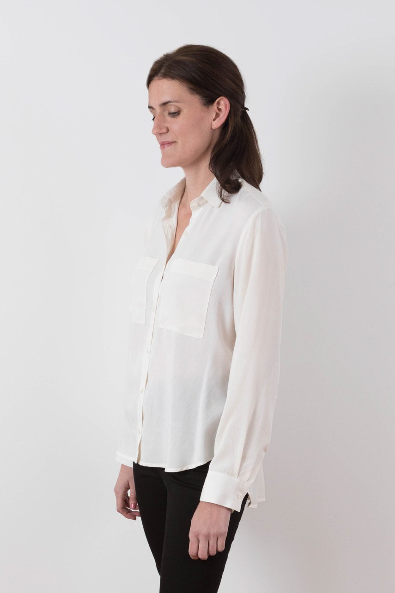Techniques: Sewing a straight seam, sewing darts, setting sleeves, creating continuous button plackets, adding a shirt collar, and inserting buttons & buttonholes.