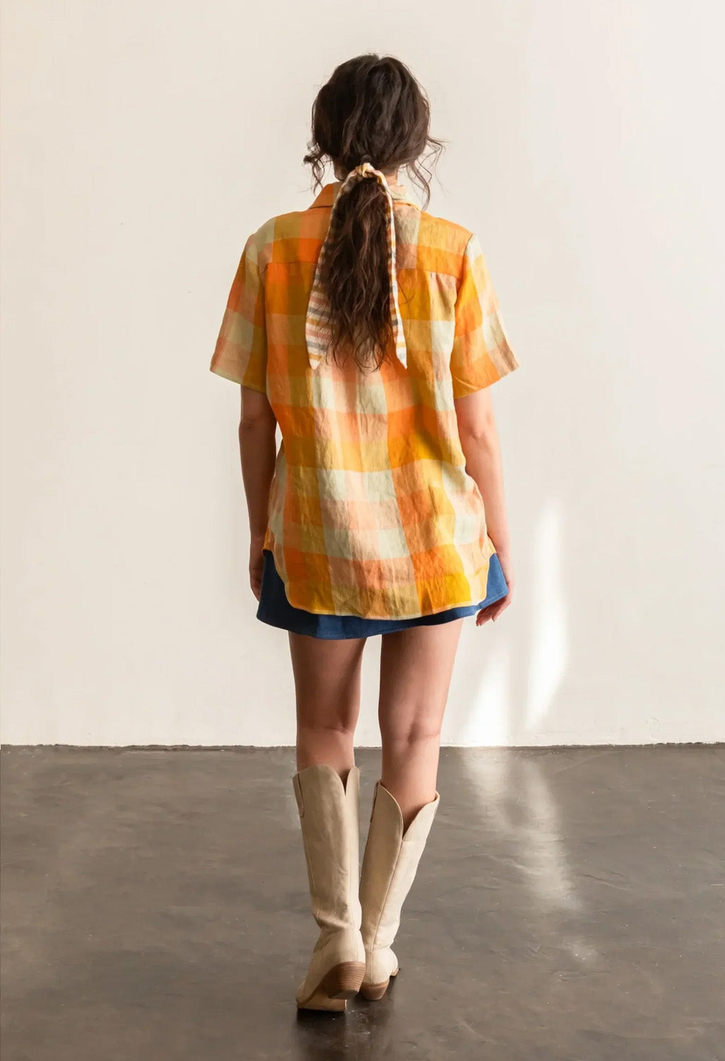 The Butano Button Up is both an understated essential and the ultimate styling workhorse in your wardrobe! The Butano has a relaxed fit with enough ease to feel effortless without being entirely oversized. It comes with options to be sewn with short sleeves or long sleeves with a bound placket and cuff. The optional neckerchief runs through belt loops on the collar stand and can be worn in a bunch of different ways. The shirt also features bust darts, a back pleat, collar stand, and a cute chest patch pocket. The instructions feature clever construction to make the trickier aspects of sewing a button up achievable for the confident beginner!