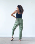 The Dani pattern is an elastic waist short or pant with inseam and rear pockets, a small paperbag waist, and a cuff. Views A and C are shorts with an approximate 3 inch inseam. Views B and D are pants that hit at the ankle with an approximate 27.5 inch inseam. Views A and B have a zip fly and two buttons at the waist, while Views C and D have a full elastic waistband for an easy pull on fit.