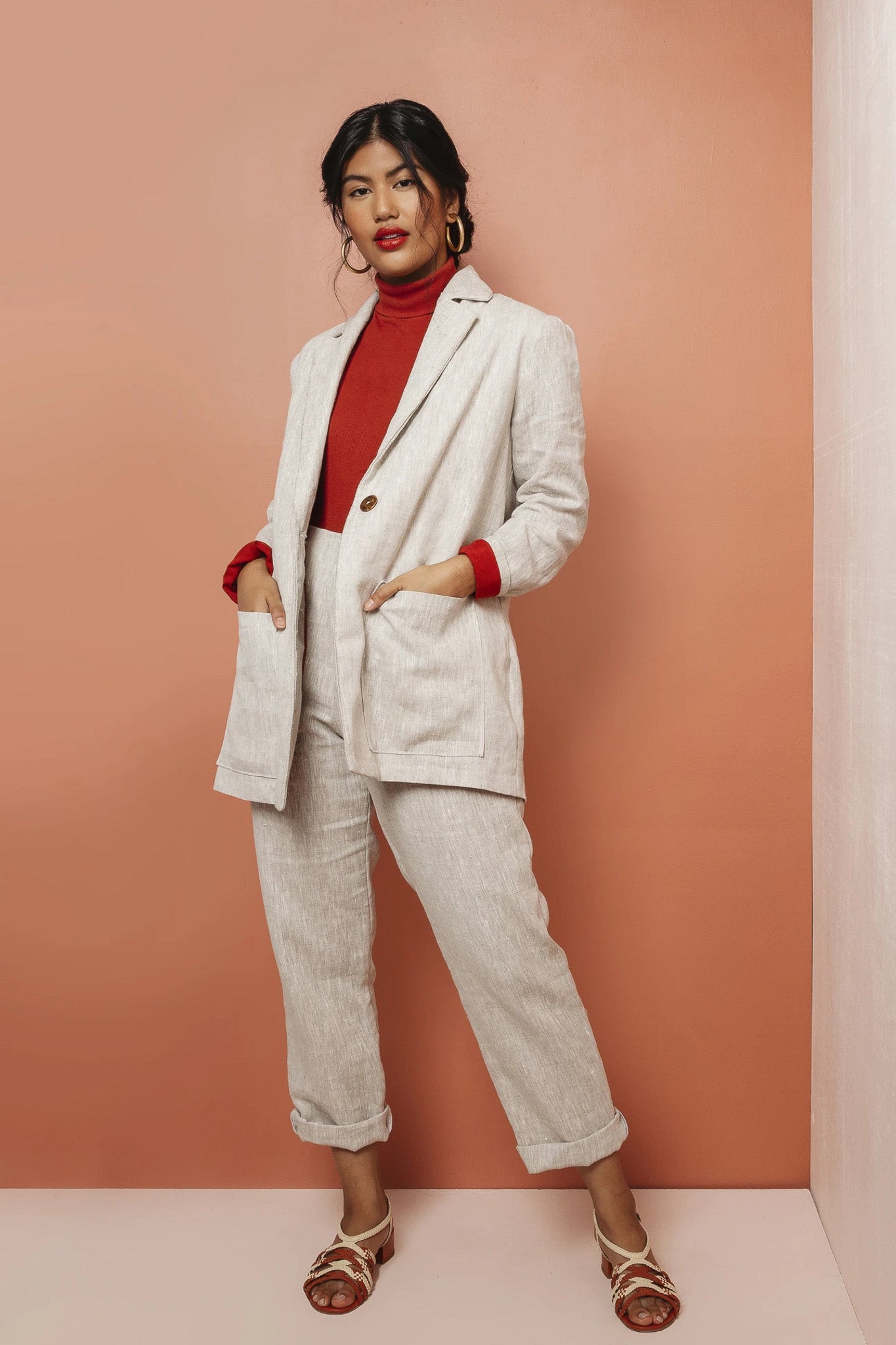 The Heather is an unstructured, modern blazer. This comfortable and stylish jacket has a slightly oversized fit and can be worn in all seasons. It is the perfect editorial layering piece. This pattern is designed to be approachable for the beginner sewist. If you have always wanted to dip your toe into making outerwear but have felt intimidated, this is a great place to start.