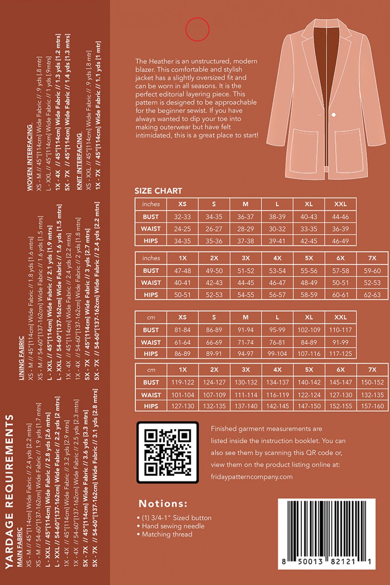 Suggested fabric: The Heather Blazer is designed for woven fabrics. The easy silhouette of the Heather makes it look great in a variety of fabrics.