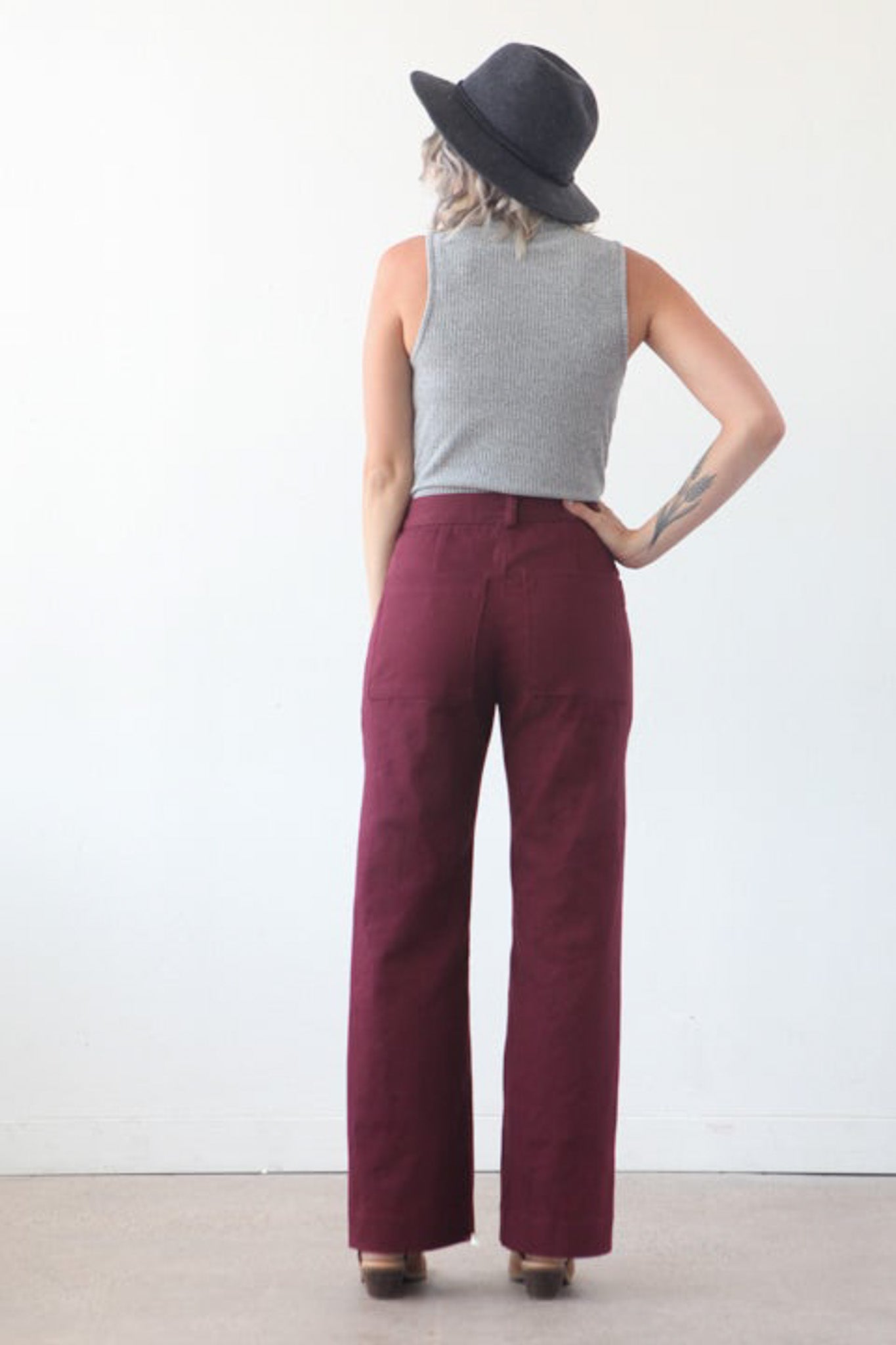 Suggested fabrics: Medium to heavy bottomweight fabrics with little to no stretch, such as twill, linen, corduroy, and denim // Front pocket linings: Light to medium weight woven fabric, such as rayon bemberg, cotton voile, quilting cotton, linen, or standard lining fabrics.