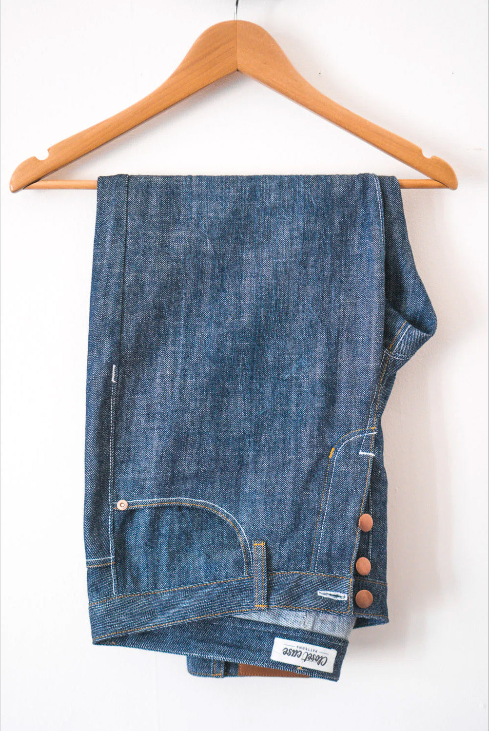 Suggested fabrics: Main: Non-stretch denim, twill, canvas or heavier weight linen (please note that heavier weight denims do not have as much give and may require going up a size). Pockets: Medium weight wovens, such as quilting cotton (0.5 yd/0.45 m).