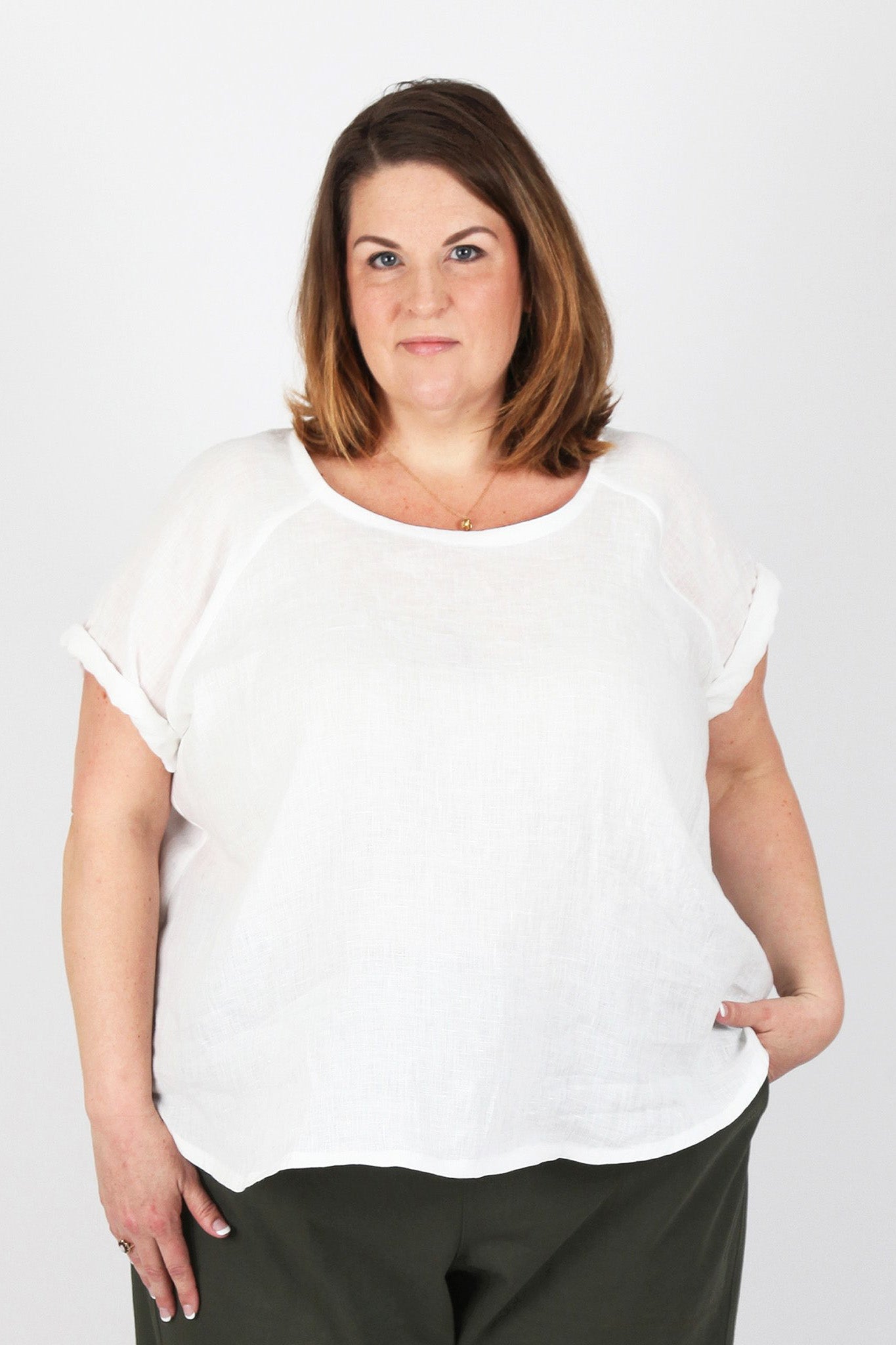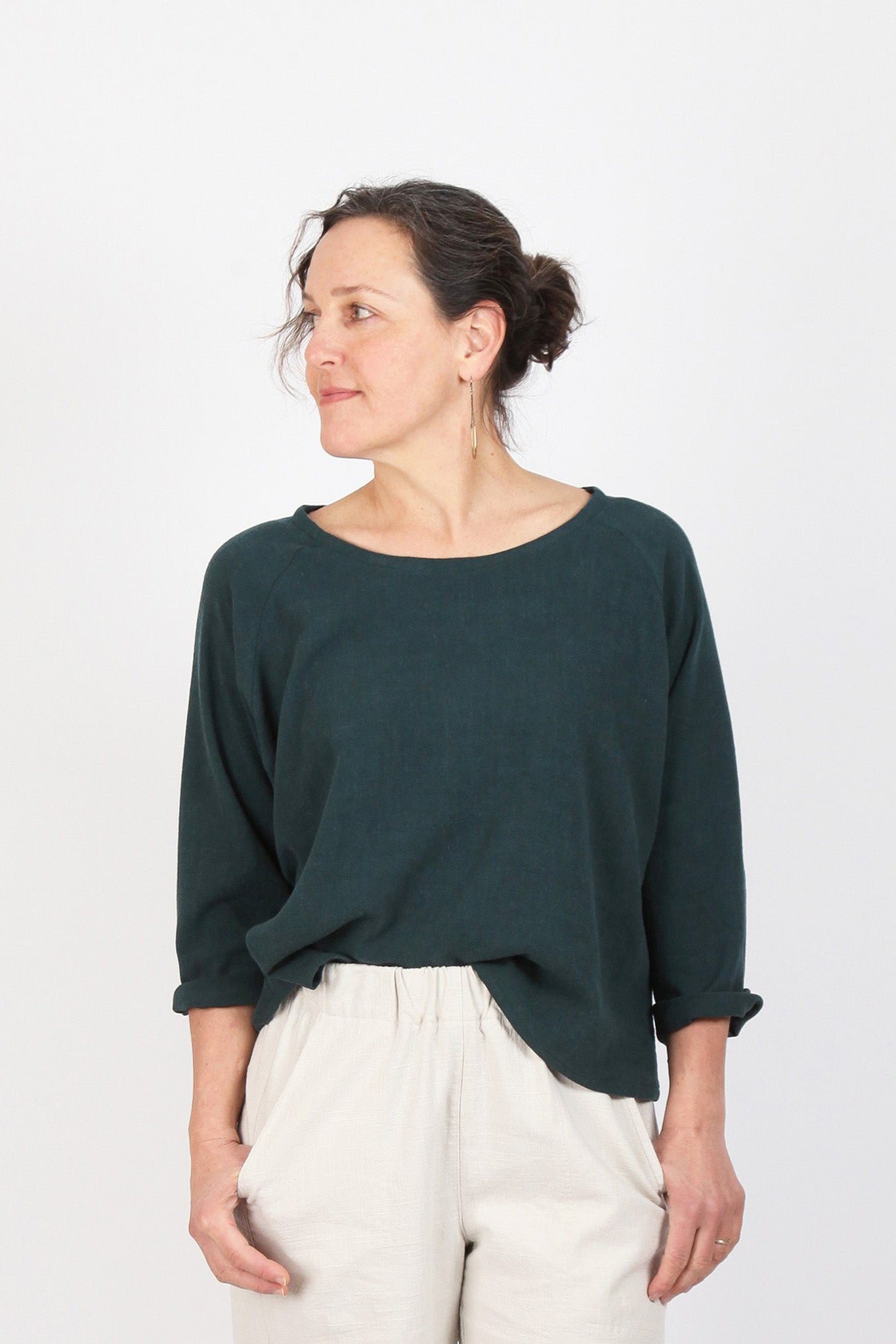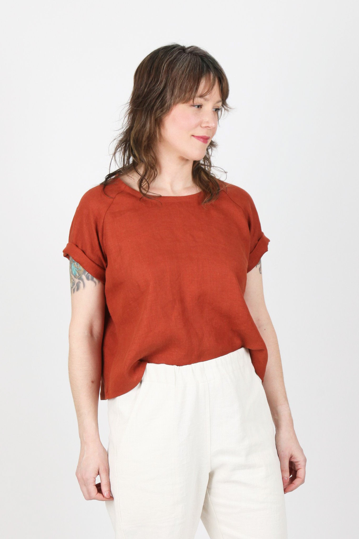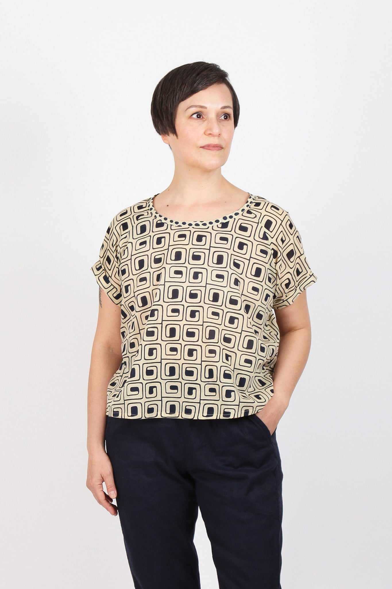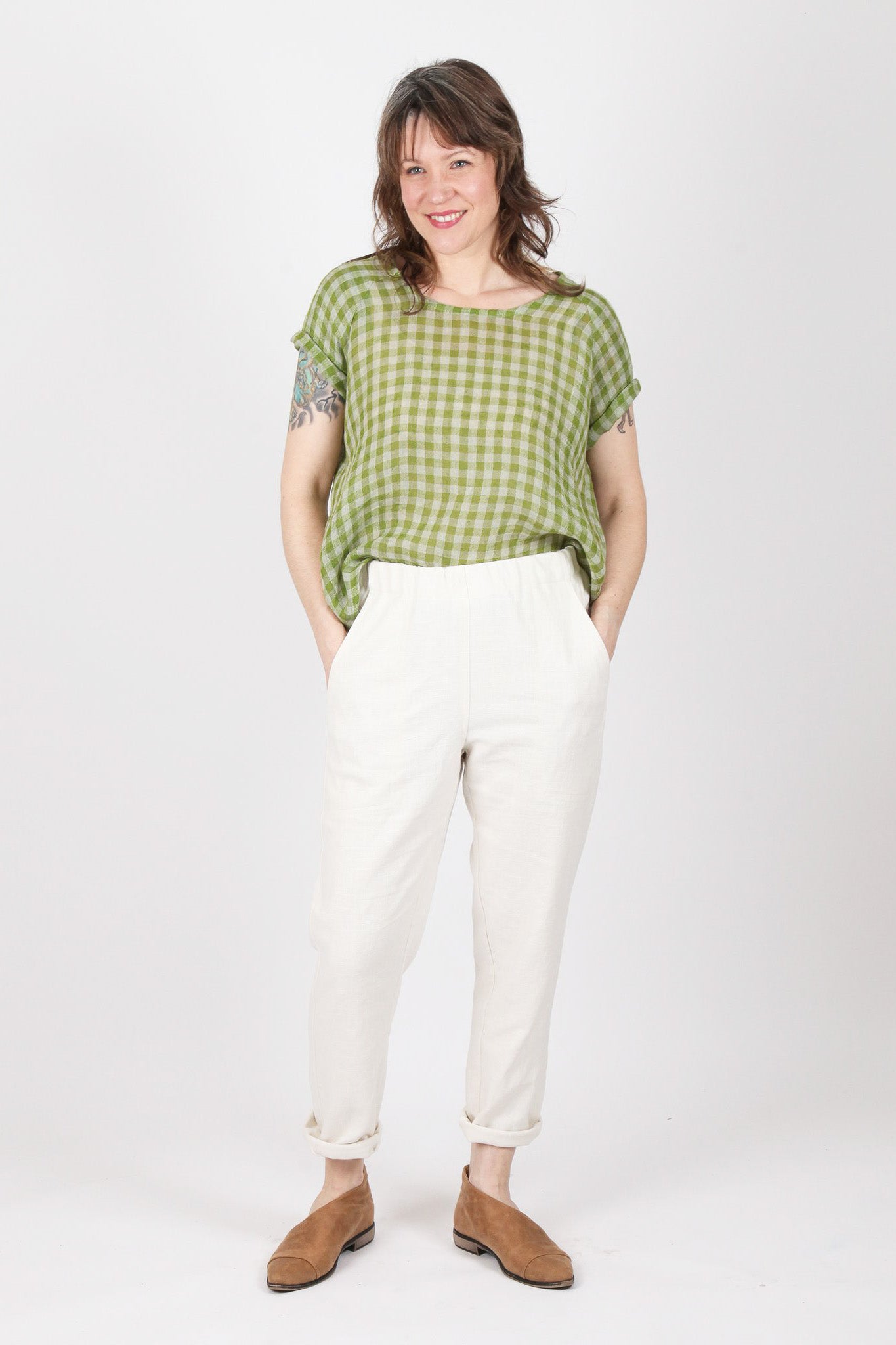 Suggested Fabrics: This pattern is designed for lightweight linen, but any lightweight woven will do. If you choose a more rigid fabric such as cotton lawn, the neck may appear smaller and the bottom hem fuller. For short sleeve option choose a fabric with no obvious wrong side.