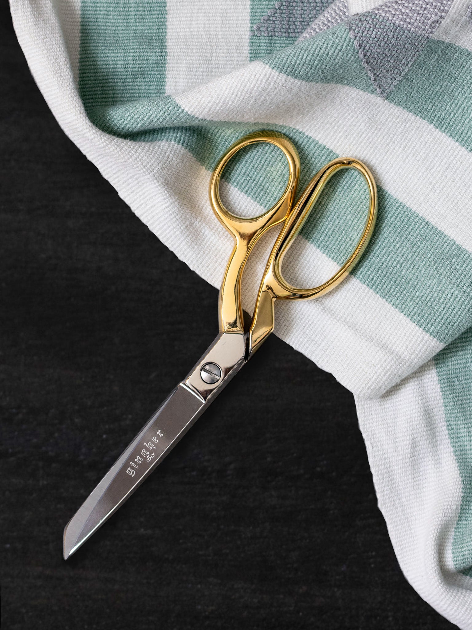 These Gingher Gold-handled Dressmaker Shears are as pretty as they are tough. Crafted of premium, forged steel with long, knife-edge blades, these scissors are ideal for cutting patterns, trimming seams or cutting long swaths of fabric.