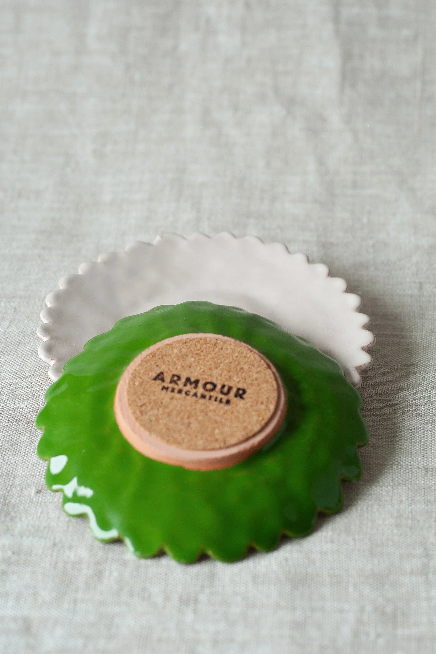 A little magnetic dish to collect and hold your pins and needles. Ceramic dish with cork bottom. Aprox. 3”