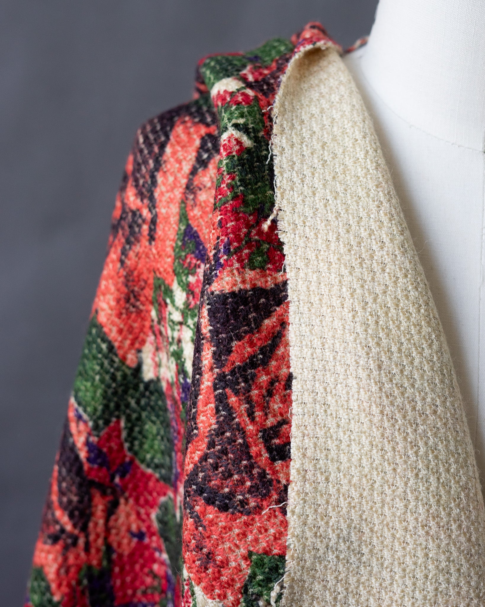 This upholstery inspired floral print wool is perfect for your next quilted jacket, blazer, or home decor project.