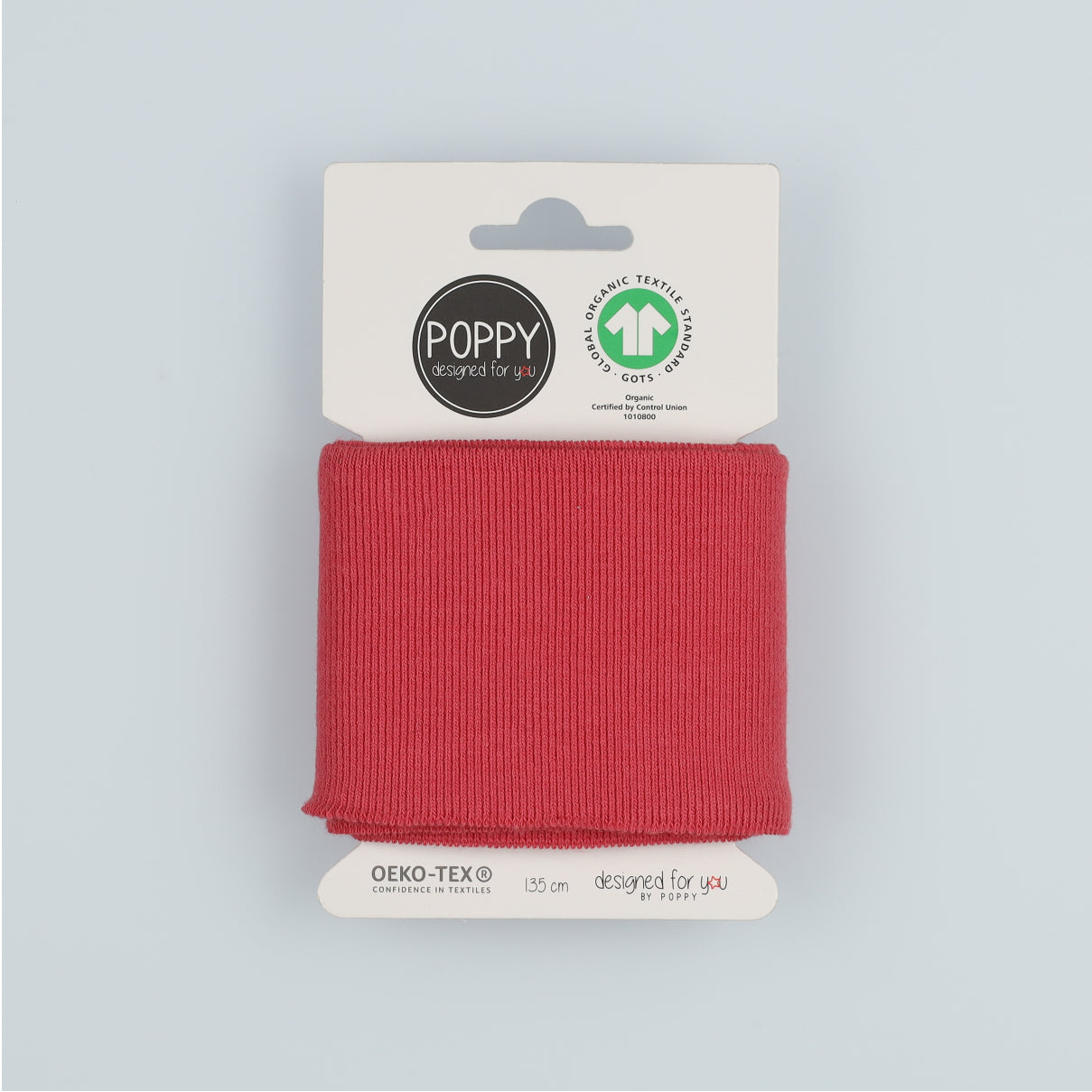 Add a tidy finish to your necklines and cuffs with this spiced coral cotton ribbing. Sold in pre-made strips with a total of 53 inches, in colors that match our collection of French Terry.