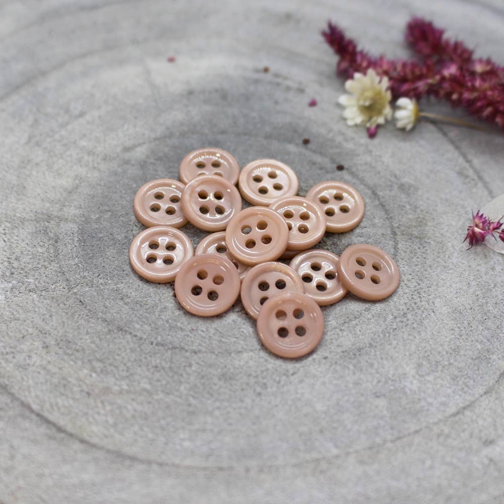 Atelier Brunette produces its own range of buttons made in France. Discover the various button styles selected for you and available in the emblematic Atelier Brunette colors.The "Bliss" buttons in varnished mother of pearl will allow you to make beautiful finishes when sewing. This simple button with its shiny touch brings just the right amount of finesse to your shirts and blouses. Sizes: 9 mm - 11 mm - 15 mm Material: varnished mother of pearl Color: Maple Made in France Oeko-Tex Standard 100 certified Machine wash on gentle cycle