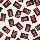 Add a unique western flair to your sewing projects with these Cowboy Boot Woven Labels. Featuring a vibrant combination of pink, yellow, and metallic gold, these double-sided labels are perfect for apparel, quilts, and bags. Get creative and let your inner cowgirl shine!