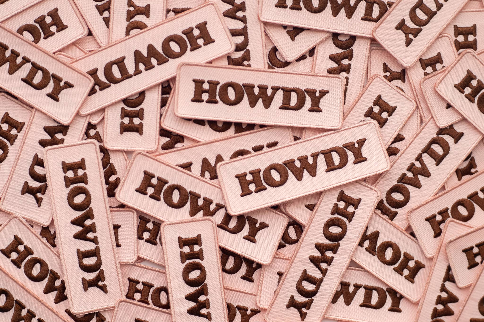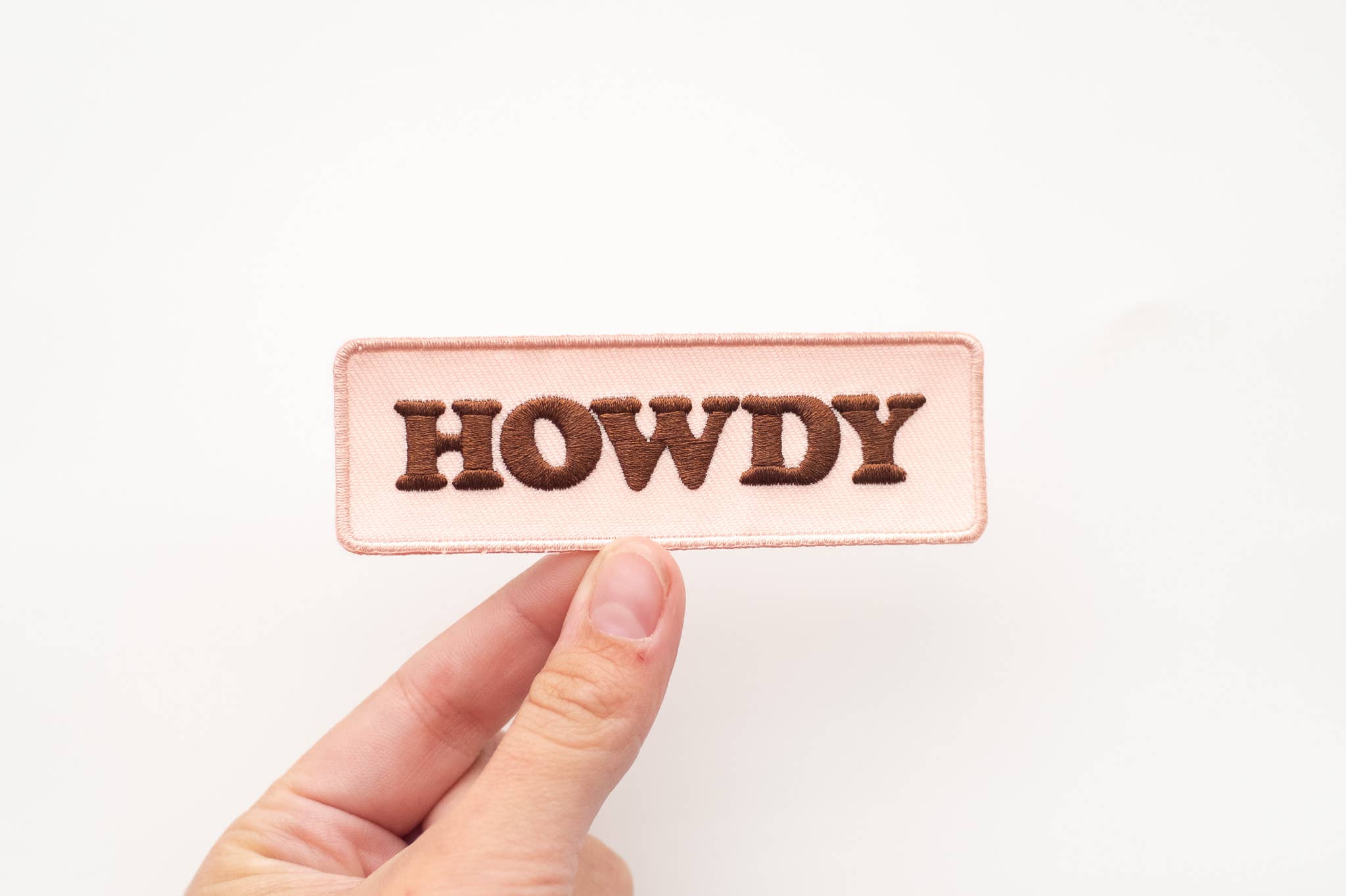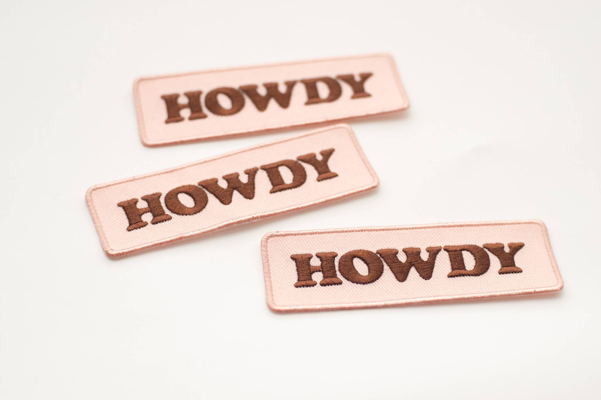 Saddle up in style with our charming "Howdy" 3.5-inch long embroidered patch, a perfect blend of Western flair and feminine charm! This high-quality iron-on patch features a delightful color combination of rich brown and pale pink, adding a touch of sweetness to whatever it is placed on.